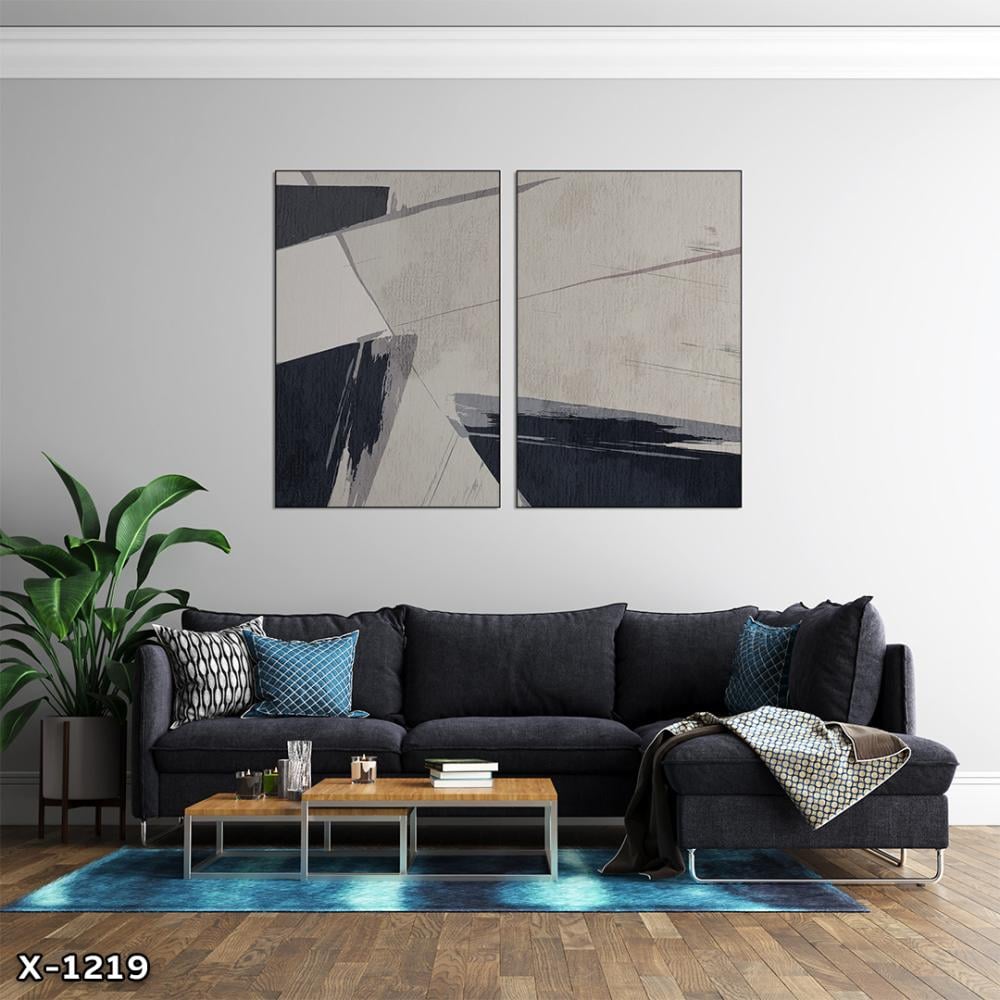 لوحة قطعتين رسم تجريدي