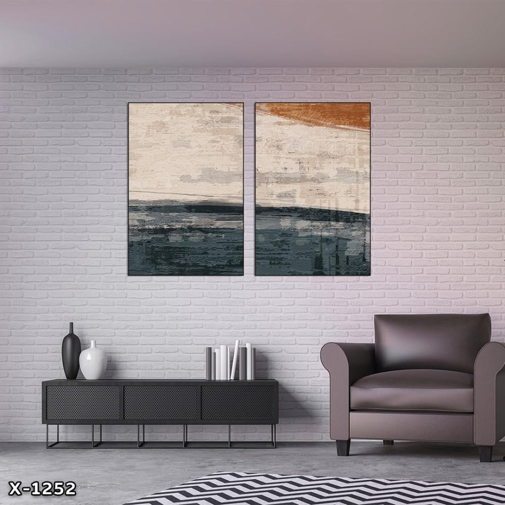لوحتان كانفاس رسم تجريدي قطعتين من متجر عالمكم ومثبتة بأحكام بشكلي عرضي